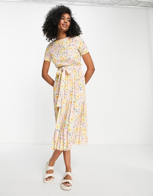 ASOS DESIGN pleated midi dress with short sleeves in pastel ditsy print