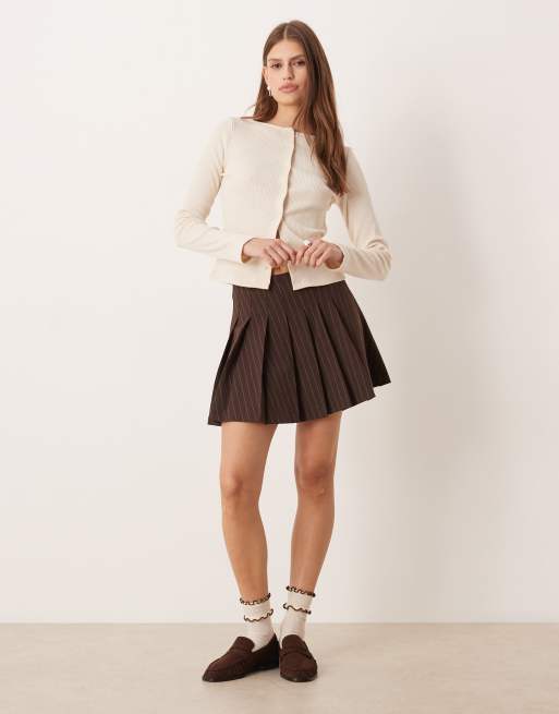 ASOS DESIGN pleated mini skirt in chocolate pinstripes
