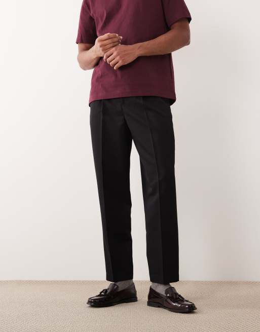 ASOS DESIGN pleated relaxed tapered dress pants in black
