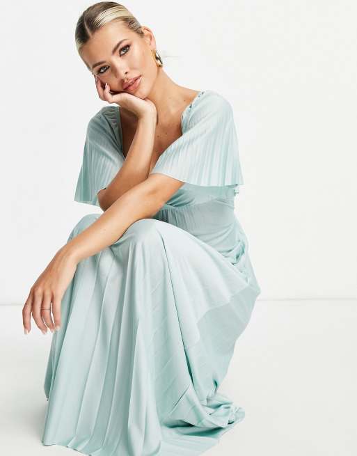 ASOS DESIGN pleated twist back cap sleeve maxi dress in light blue