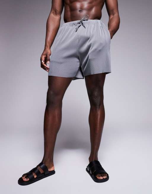 ASOS DESIGN plisse swim shorts in mid length in gray