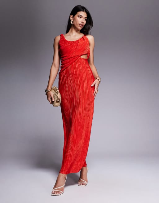 ASOS DESIGN plunge drape plisse maxi dress in orange