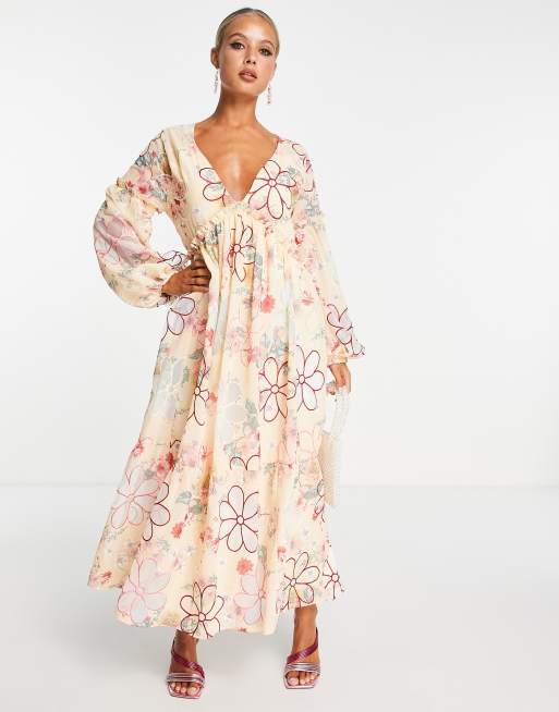 ASOS DESIGN plunge neck all over floral embroidered maxi dress