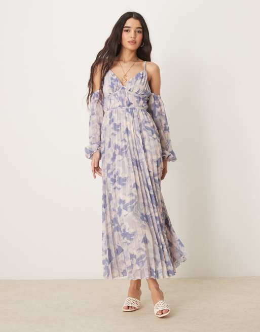 ASOS DESIGN plunge off the shoulder pleated midaxi dress in floral print