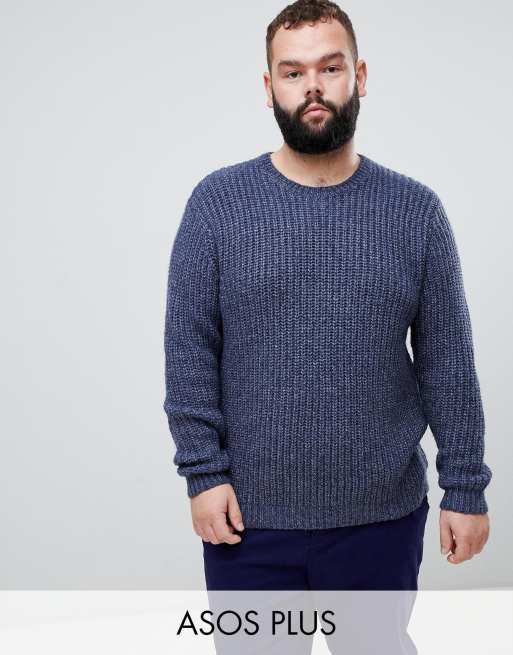 ASOS DESIGN Plus heavyweight fisherman rib jumper in navy