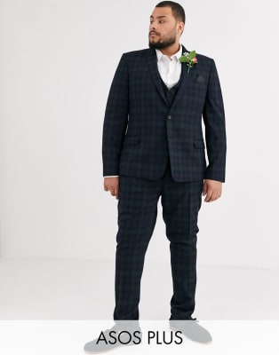 ASOS DESIGN Plus super skinny suit in blackwatch plaid check in navy