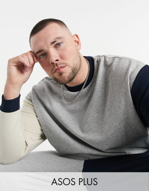 ASOS DESIGN Plus tracksuit set in gray heather & navy color block