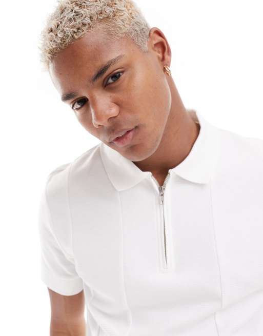 ASOS DESIGN polo in white with silver zip