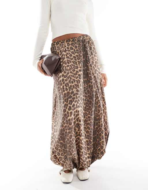 ASOS DESIGN poplin puffball maxi skirt in leopard print