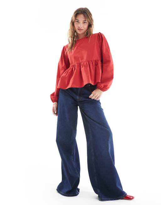 ASOS DESIGN poplin tie side smock blouse in red