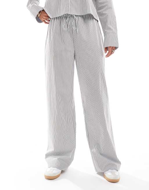 ASOS DESIGN poplin wide leg pants in blue stripe