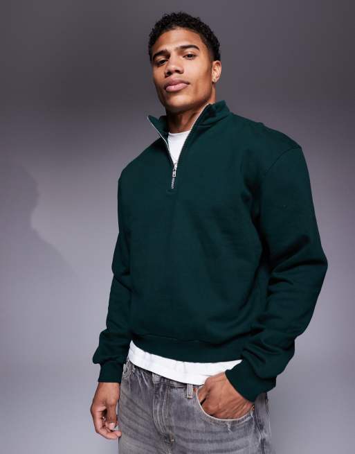 ASOS DESIGN premium boxy oversized quarter zip sweatshirt in 400gsm dark green