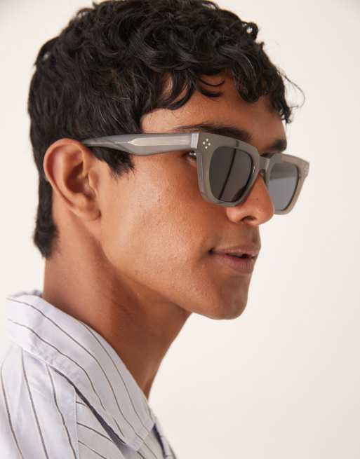 ASOS DESIGN premium chunky square sunglasses in gray crystal frames with smoke lenses