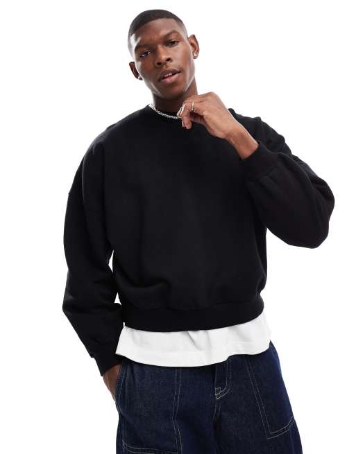 ASOS DESIGN premium heavyweight oversized boxy drop shoulder sweatshirt 400gsm in black