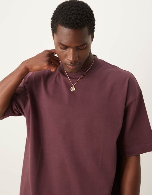 ASOS DESIGN Premium heavyweight oversized high neck t-shirt 300gsm in brown