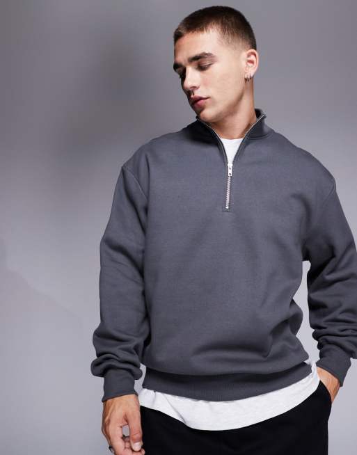 ASOS DESIGN premium heavyweight oversized quarter zip sweatshirt 400gsm in washed black
