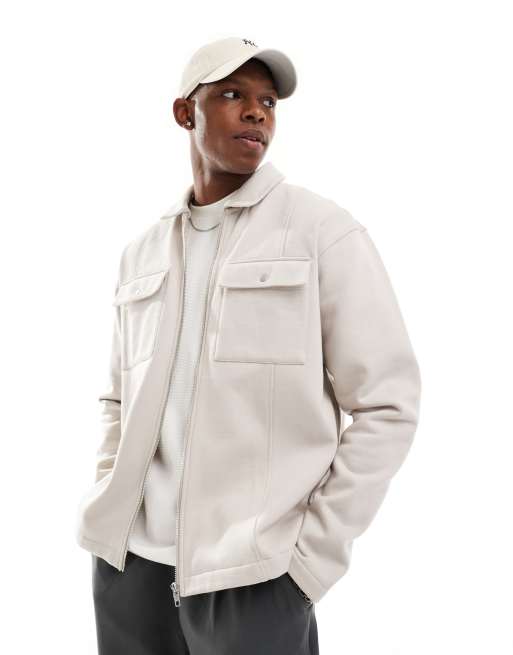 ASOS DESIGN premium heavyweight shacket in 400gsms in beige