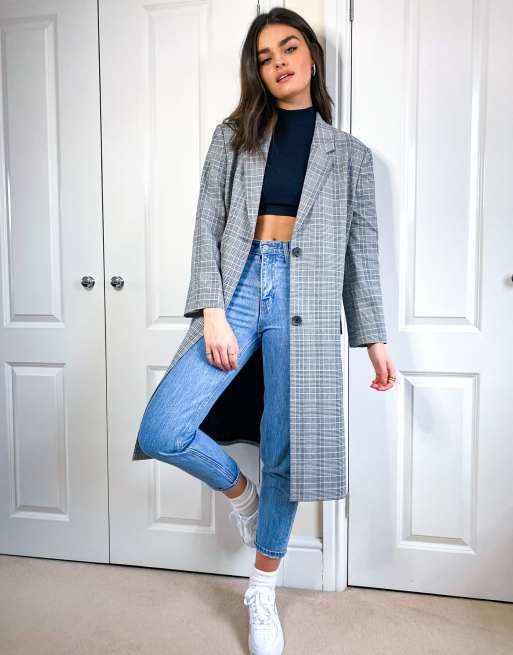 ASOS DESIGN premium longline suit blazer in check