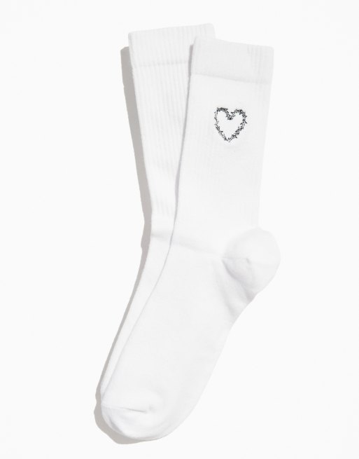 ASOS DESIGN PRIDE genderless socks in white dye with heart embroidery