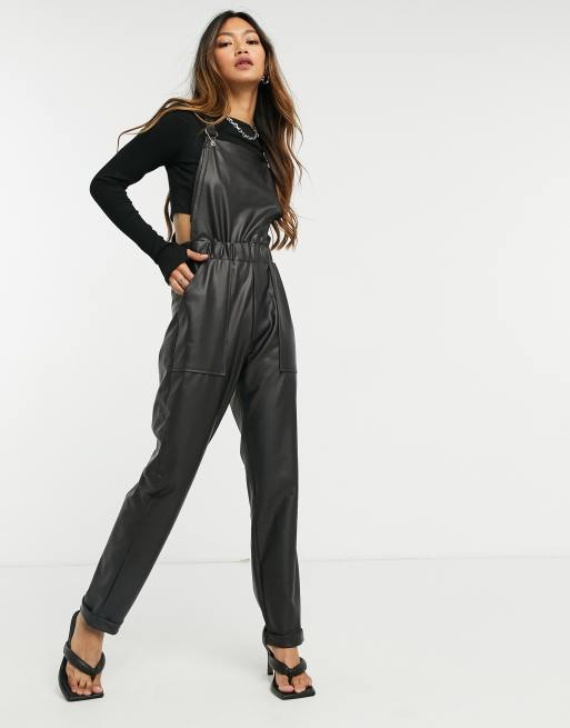 ASOS DESIGN PU cuffed overalls in black