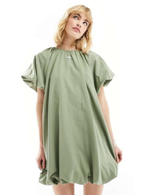 ASOS DESIGN puffball smock mini dress in dusky sage