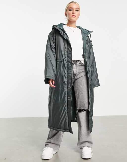ASOS DESIGN puffer parka coat in charcoal - gray