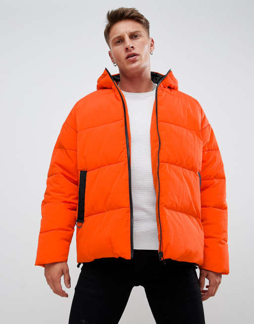 ASOS DESIGN puffer with hood in orange