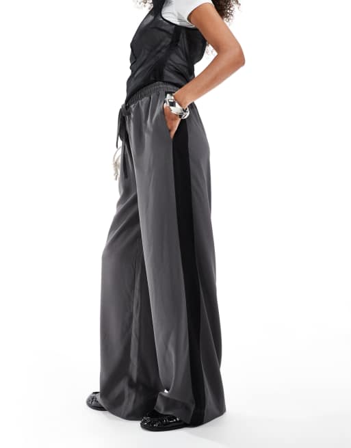 ASOS DESIGN pull-on pants with contrast panel in charcoal
