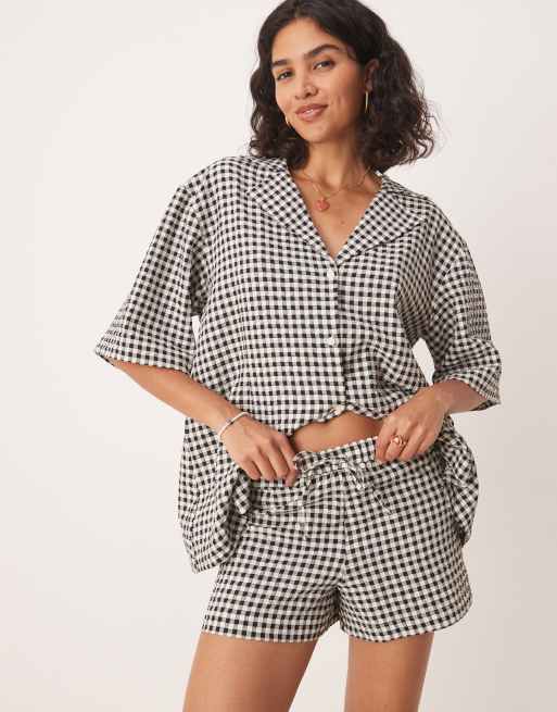 ASOS DESIGN pull-on shorts in mono gingham