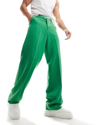 ASOS DESIGN pull on smart wide leg pants in green