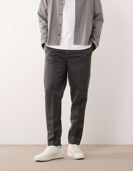 ASOS DESIGN pull on tapered dress pants in charcoal