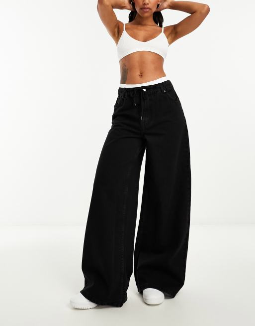 ASOS DESIGN pull on wide leg jeans in washed black