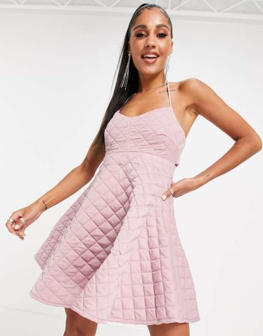 ASOS DESIGN quilted halter mini skater dress in rose