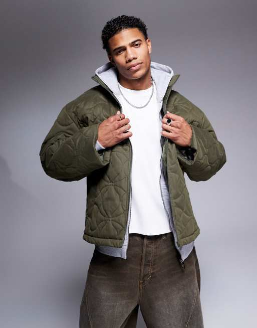 ASOS DESIGN quilted puffer jacket in khaki