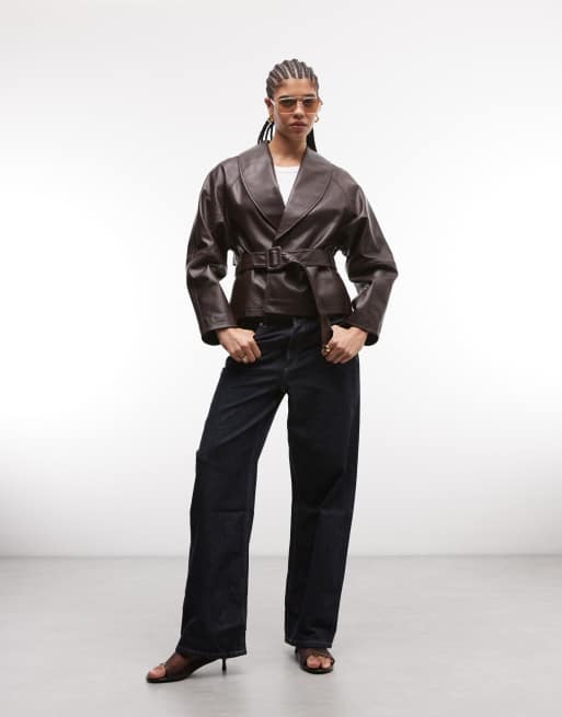 ASOS DESIGN real leather belted jacket in burgundy