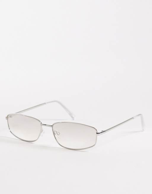 ASOS DESIGN rectangle sunglasses in silver-tone metal with smoke lenses