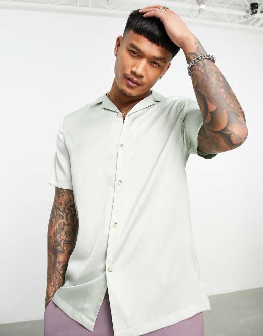 ASOS DESIGN regular camp collar satin shirt in mint green