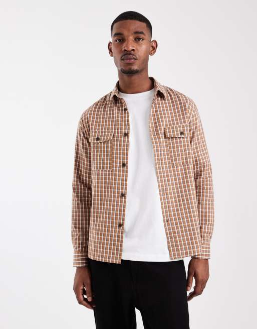ASOS DESIGN regular fit plaid shirt in brown