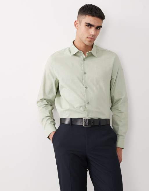 ASOS DESIGN regular fit smart linen blend shirt in sage green