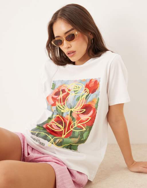 ASOS DESIGN regular fit T-shirt with Eternal Bloom flowers in white