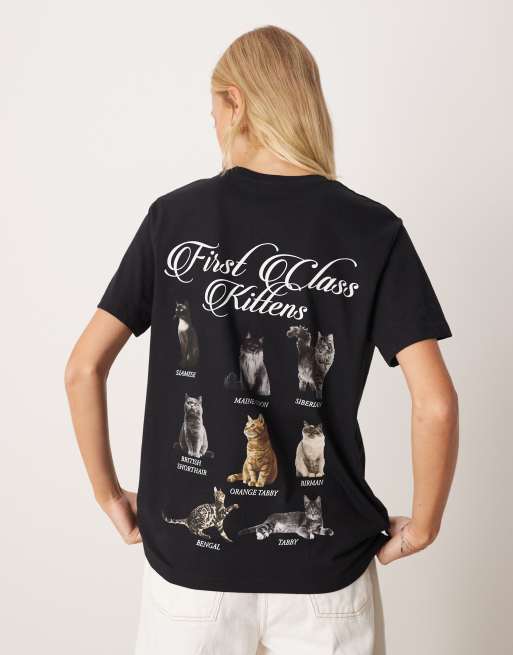 ASOS DESIGN regular fit T-shirt with kitten graphic in black