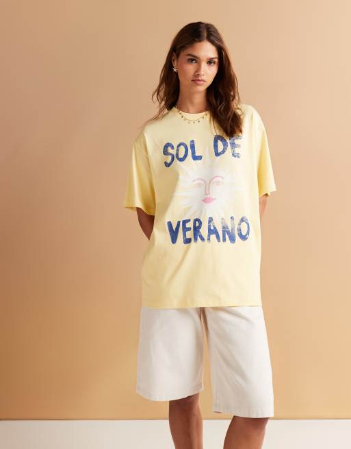 ASOS DESIGN regular fit T-shirt with sol de verano graphic in yellow