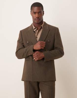 ASOS DESIGN regular herringbone double breasted suit jacket in brown wool mix
