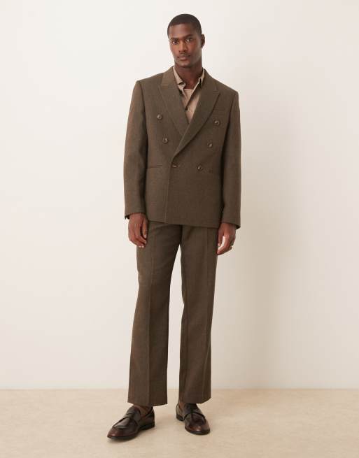 ASOS DESIGN regular herringbone double breasted suit set in brown wool mix