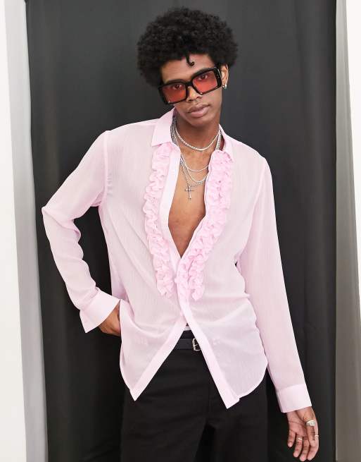 ASOS DESIGN regular sheer ruffle front shirt in pink