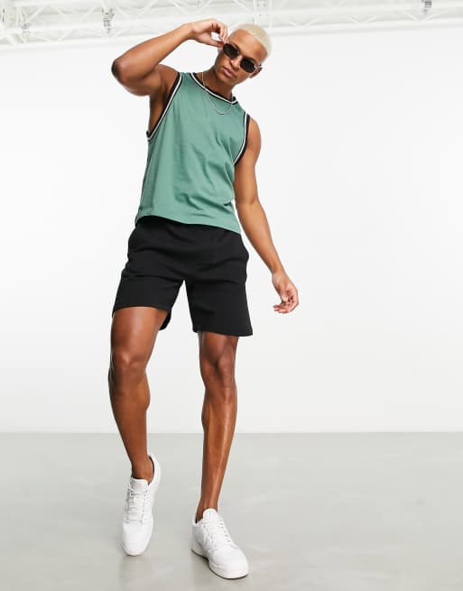 ASOS DESIGN relaxed baseball tank top in green with contrast taping