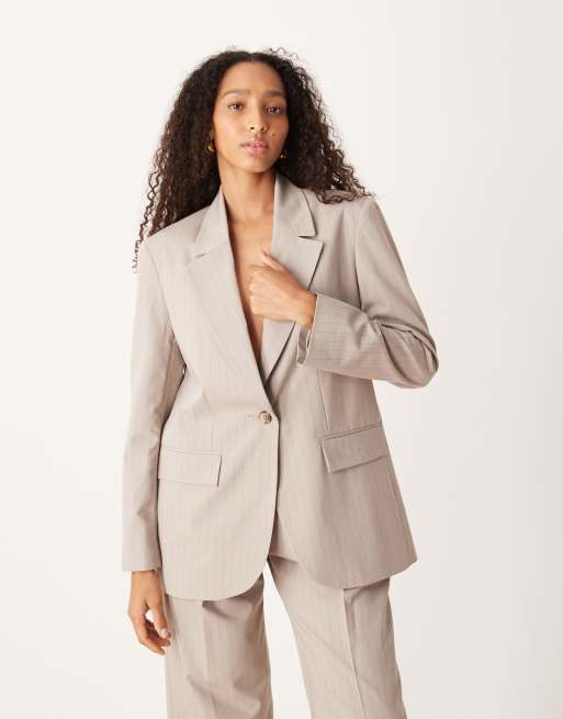 ASOS DESIGN relaxed blazer in taupe stripe - part of a set