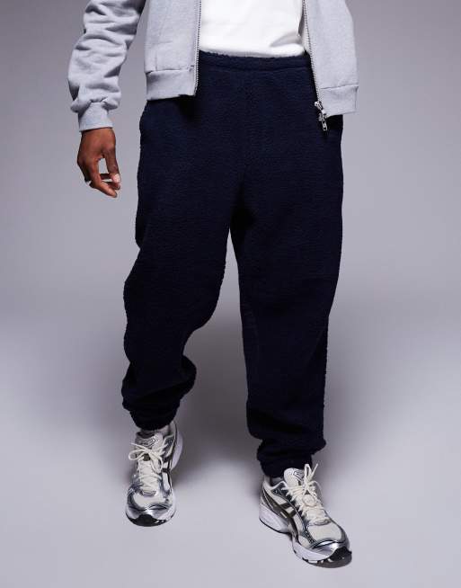 ASOS DESIGN relaxed borg sweatpants in navy