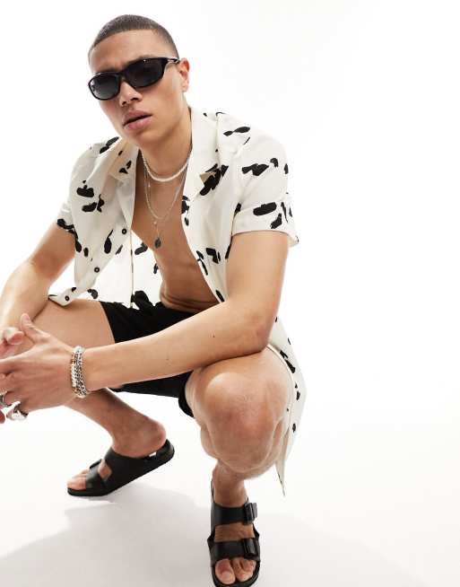 ASOS DESIGN relaxed camp collar shirt in white and black abstract dots