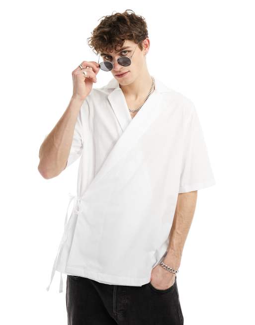ASOS DESIGN relaxed camp collar tie side shirt in white